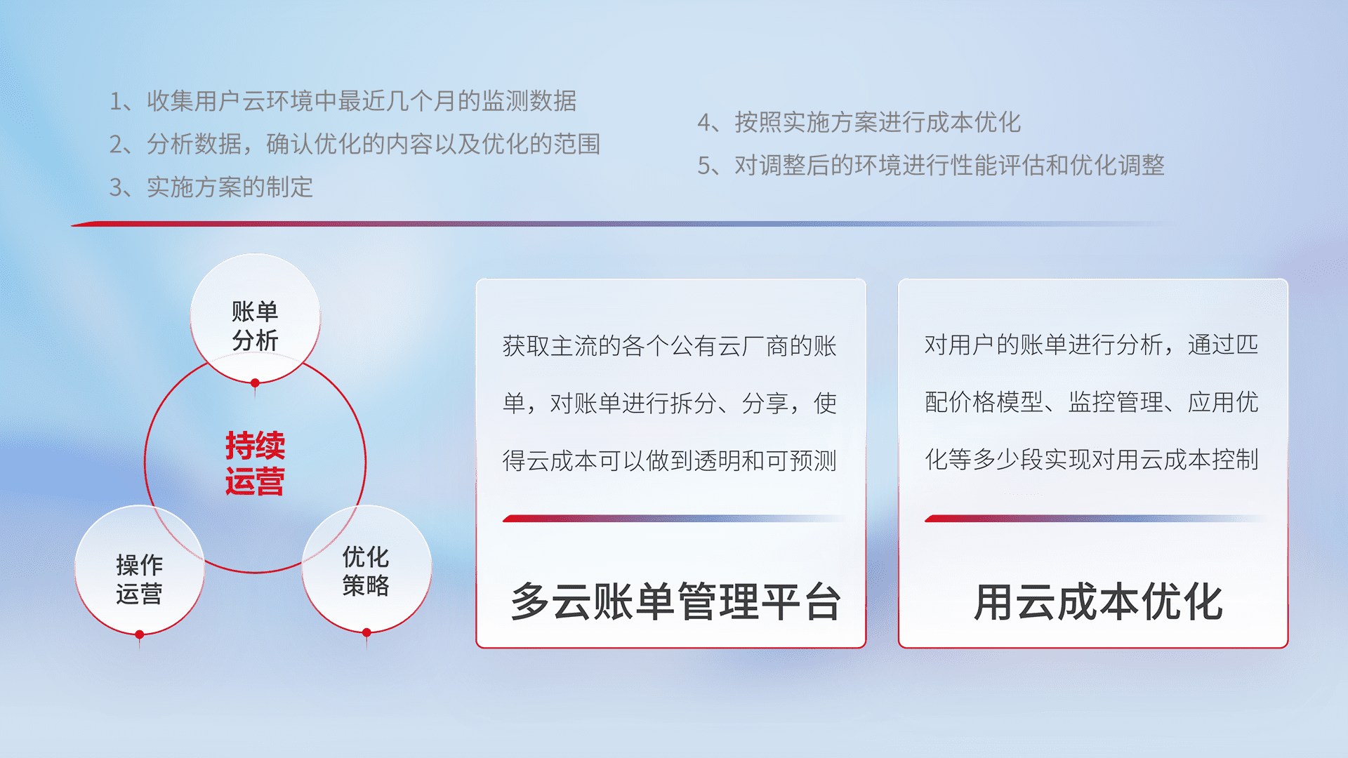 监控业务系统资源开销,,,,对资源的消耗精确计量,,,实现费用的透明化管理,,,,不断提升资源使用率,,调整资源购买方式,,,降低资源费用成本,,用云成本可预测、、、、用云费用可优化,,云资源配额有据可依。。